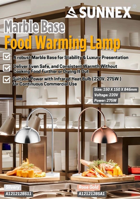 Wprowadzenie najnowszej lampy do podgrzewania żywności SUNNEX na marmurowej podstawie: