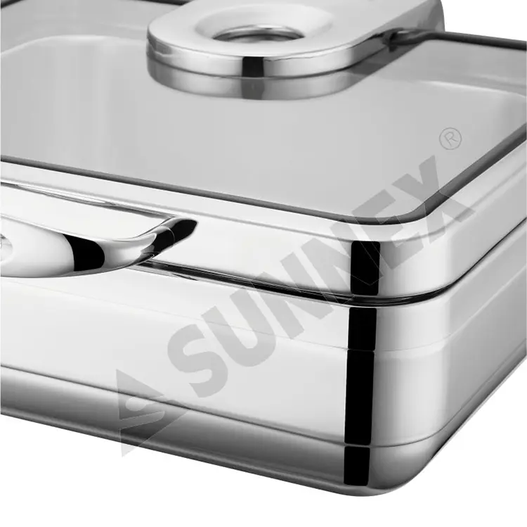 Kluczowe atrybuty Roma 2/3 Buffet Chafer obejmują zaawansowany zawias hydrauliczny z gładkim, powolnym i cichym zamknięciem (gwarancja 80000 razy); Szerokie szklane okno, które pozwala zobaczyć jedzenie bez otwierania pokrywy, unikanie utraty ciepła z powodu częstego otwierania i zamykania; Przyjazna dla indukcji, podstawa wyposażona w dno kanapki, aby złapać rosnący trend ocieplenia indukcyjnego.