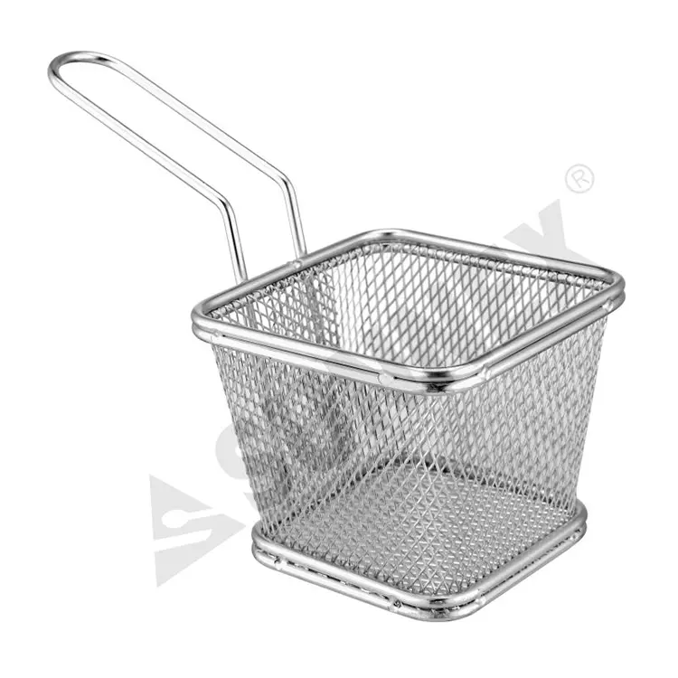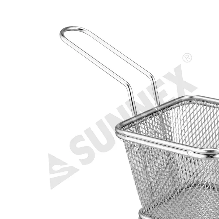 Ten stożkowy kosz kwadratowy koszyk ze stali nierdzewnej jest wykonany z wysokiej jakości stali nierdzewnej 304. Materiał ten zapewnia imponującą trwałość, odporność na korozję i rdzę oraz eleganckie, wypolerowane wykończenie, które zachowuje połysk nawet przy częstym stosowaniu w ustawieniach komercyjnych.